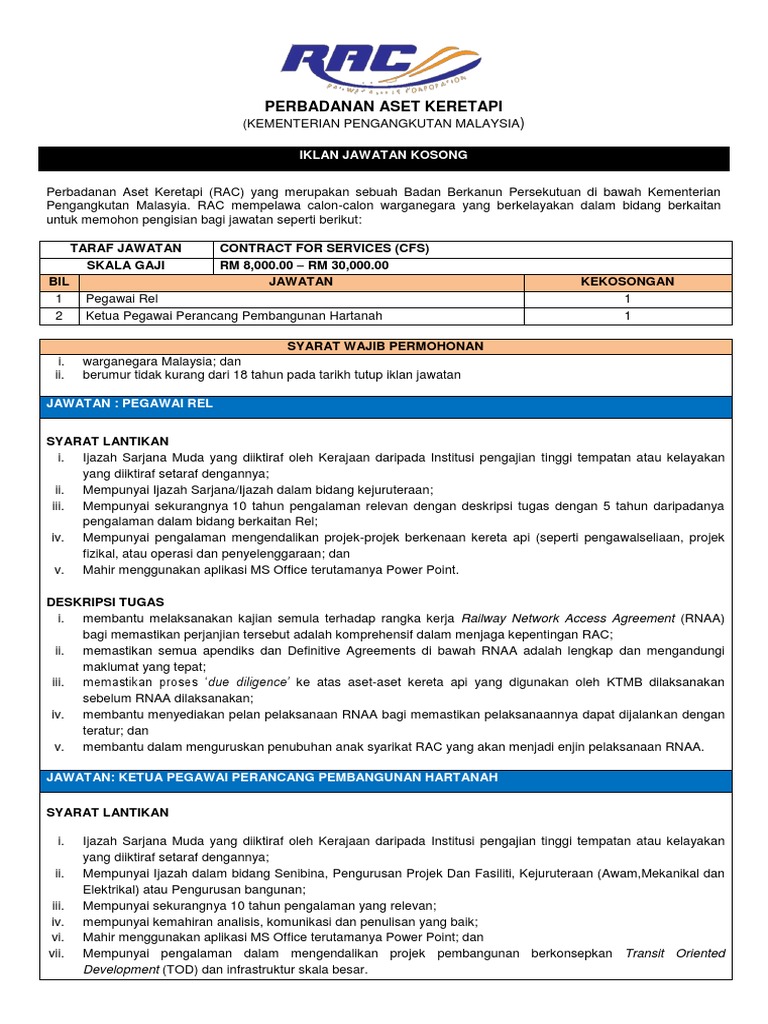 Jawatan Kosong Perbadanan Aset Kereta Api 2019 / Jawatan kosong kerajaan januari februari 2021, jawatan kosong swasta 2021, jawatan kosong terkini 2021, kerja kosong 2021, jobs malaysia 2021, ohjobs.