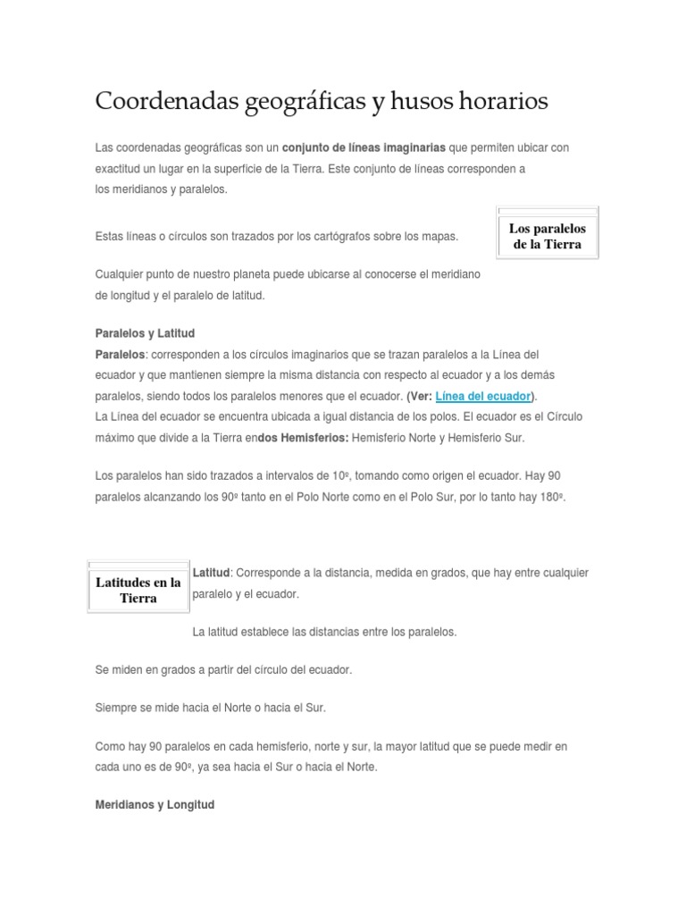 Related : Latitud Longitud Husos Horarios - Husos horarios:✅ según el sistema mundial de la hora, los husos horarios o zonas horarias son cada una de las 24 áreas en que se divide la tierra, los cuales..